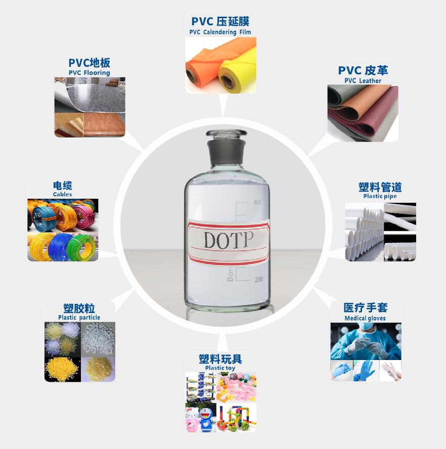 DOTP是聚氯乙烯(PVC)塑料用的一種性能優(yōu)良的主增塑劑。它與常用的鄰苯二甲酸二異辛酯(DOP)相比更加環(huán)保,具有耐熱、耐寒、柔軟性和電絕緣性能好等優(yōu)點,在制品中顯示出優(yōu)良的持久性、耐肥皂水性及低溫柔軟性。因其揮發(fā)性低,使用DOTP能完全滿足電線電纜耐溫等級要求,可廣泛應用于耐70 °C電纜料(國際電工委員會IEC標準)及其它各種PVC軟質制品中。DOTP除了大量用于電纜料、PVC的增塑劑外,也可用于人造革膜的生產(chǎn)。此外,具有優(yōu)良的相溶性,也可用于丙烯腈衍生物,聚乙烯醇縮丁醛、丁腈橡膠、硝酸纖維素等的增塑劑。還可用于合成橡膠的增塑劑,涂料添加劑,精 密儀器潤滑劑,潤滑劑添加劑,亦可作為紙張的軟化劑。